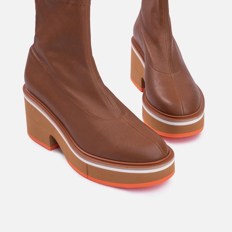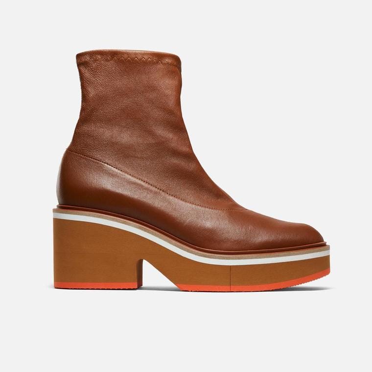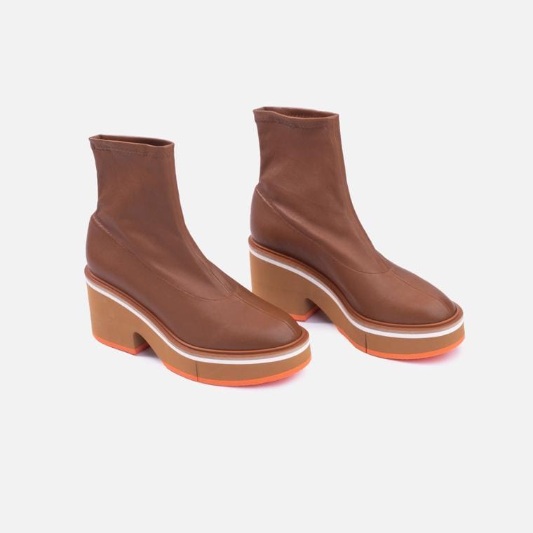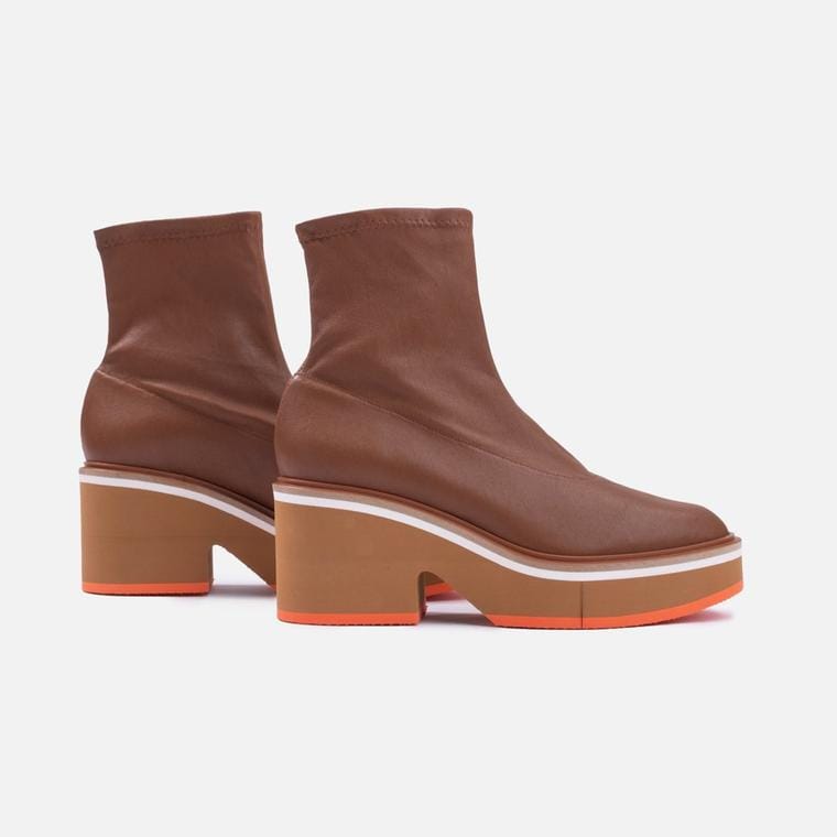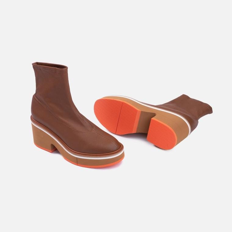Bottines en cuir d’agneau stretch, coloris bois