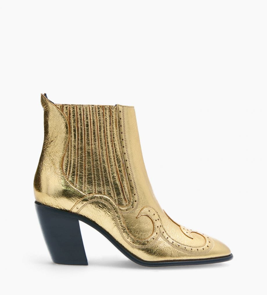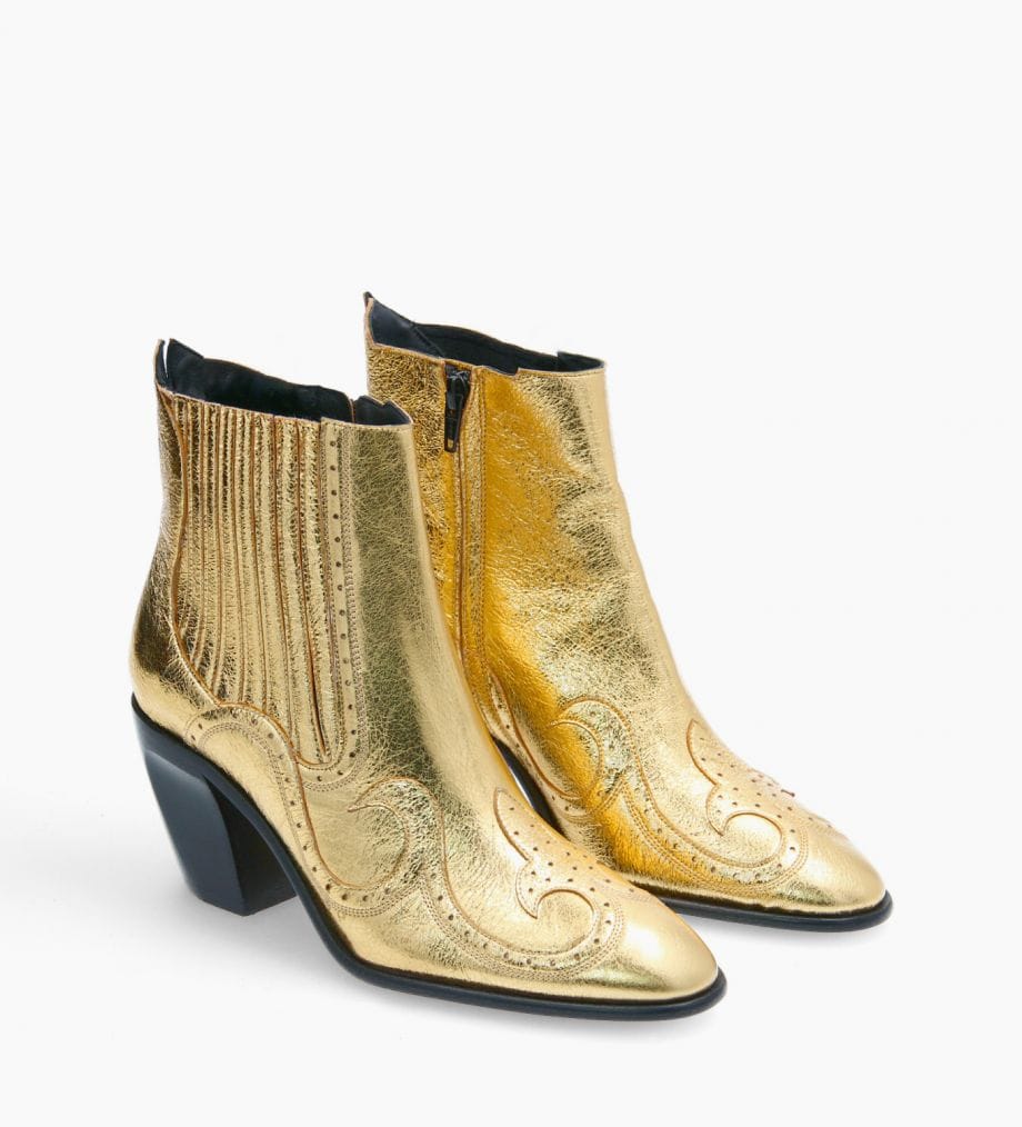Résolument urbaines, boosters d’allure, les nouvelles bottines Bobbi vous invitent à battre le pavé avec une touche wild. Dignes héritières des mythiques Santiags, elles reposent sur un talon biseauté. Matières flamboyantes, motifs enflammés – ici la conquête du style ne connaît aucune limite.