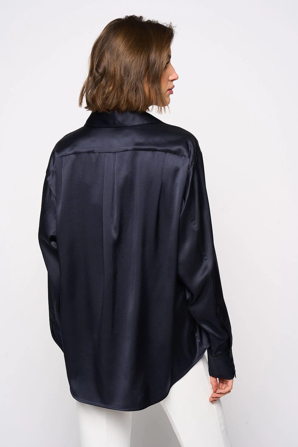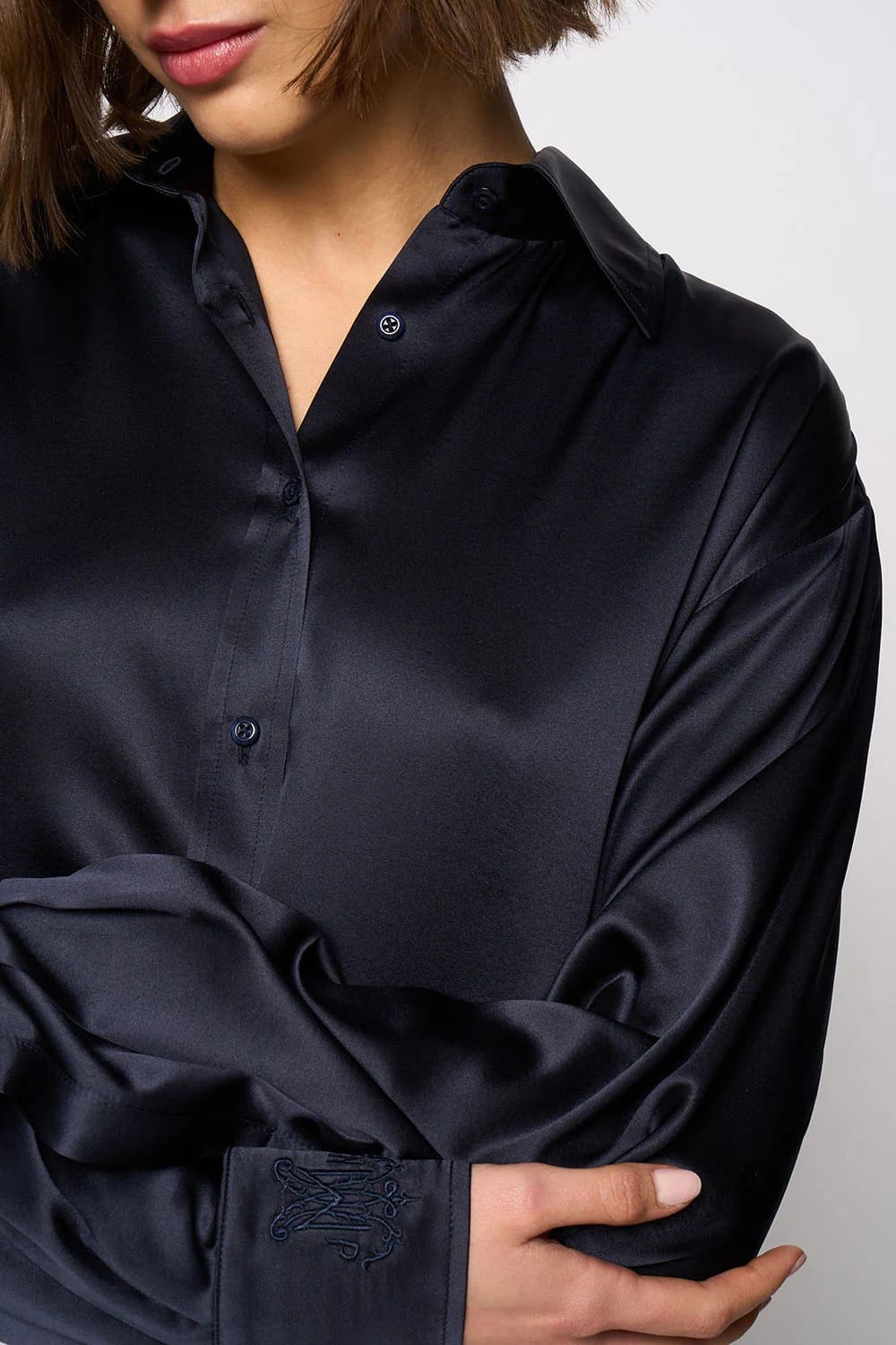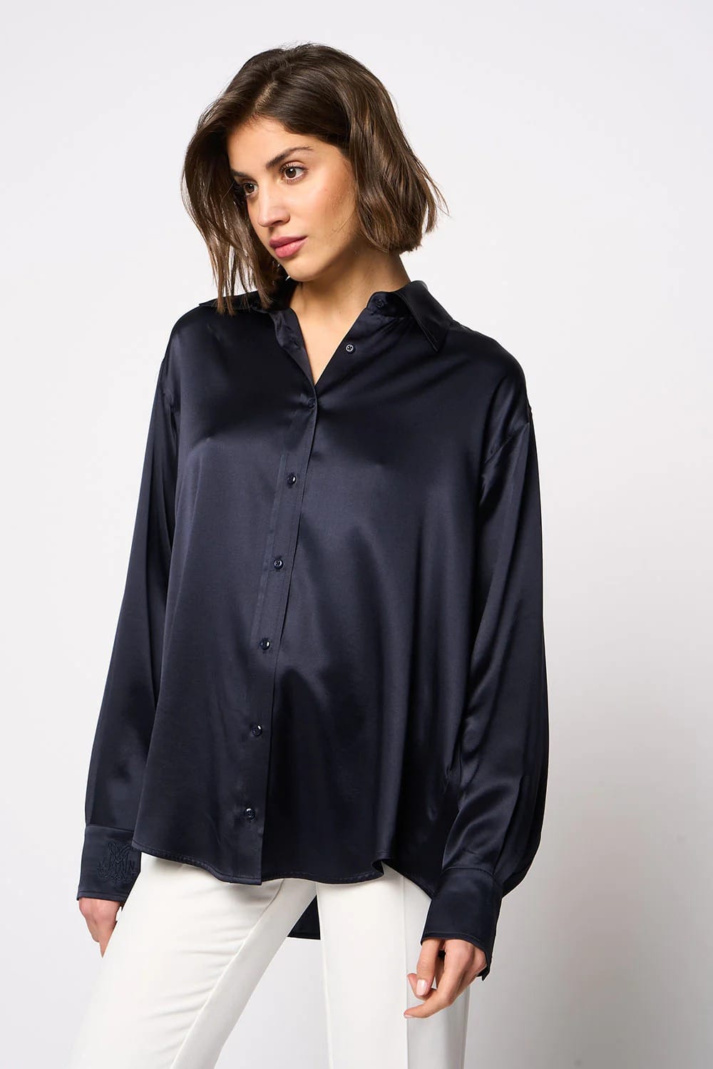 Chemise Boy-friend, manches longues, col chemise. Fermeture par boutons. Broderie du logo DMN sur poignet.