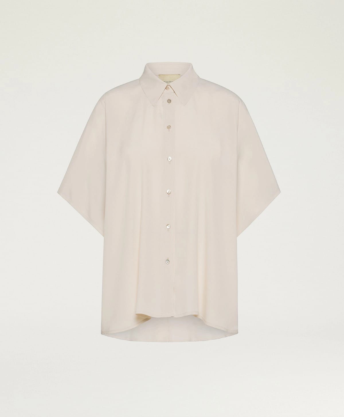 CHEMISIER BROOKLYN EN ACÉTATE/SOIE UNIE – CRÈME