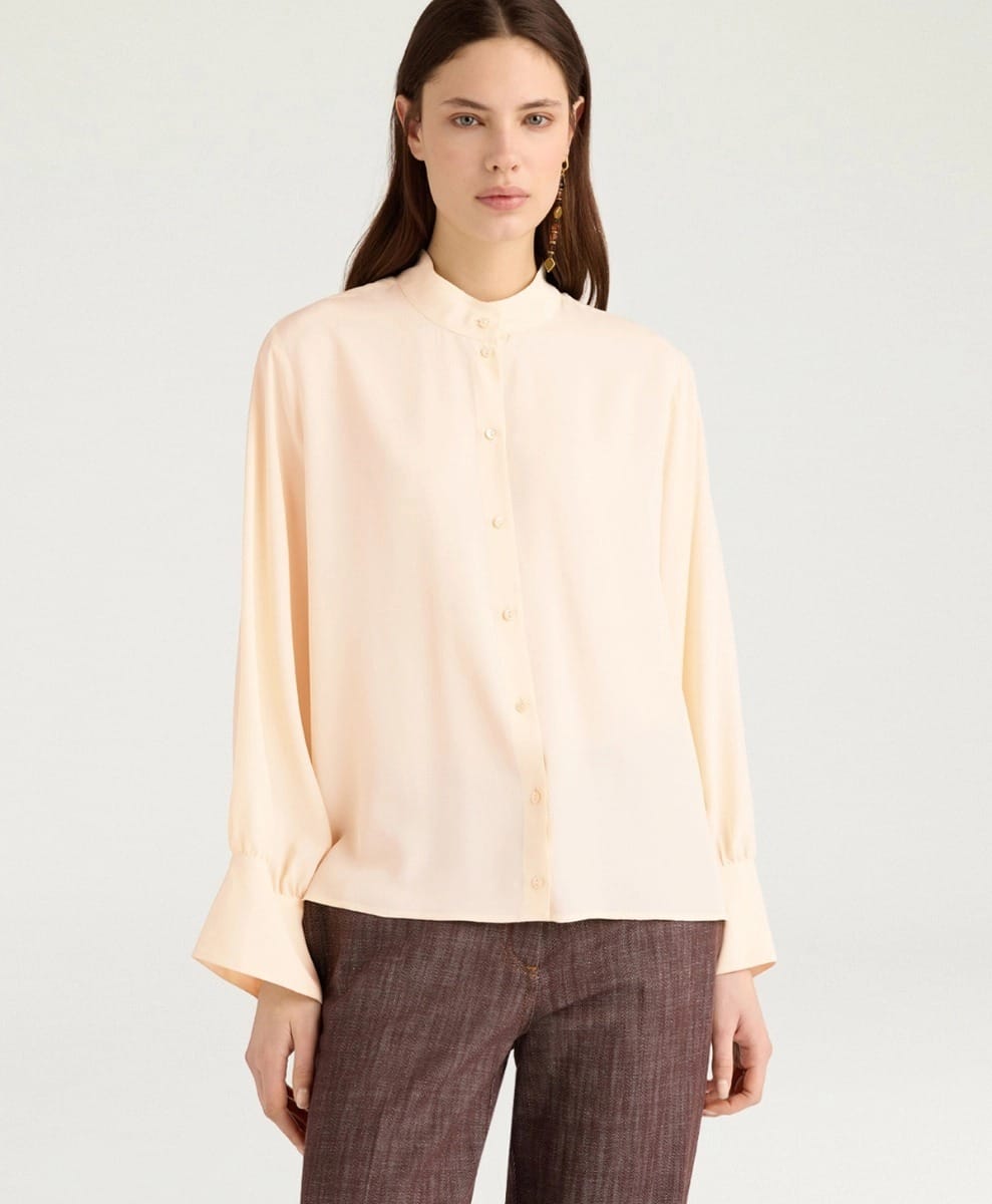 CHEMISIER FRANKLIN EN ACÉTATE DE SOIE UNI – CRÈME