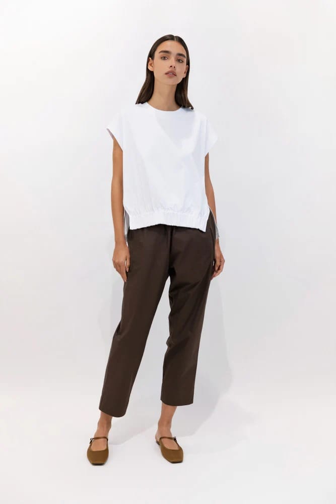 Le bas légèrement retroussé apporte une touche décontractée qui équilibre la coupe étroite, pour un rendu visuel doux et moderne. Un pantalon de jogging polyvalent, conçu pour une liberté de mouvement optimale, tout en affichant une esthétique urbaine et raffinée.