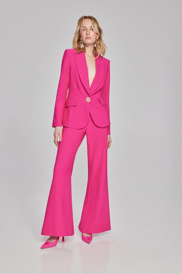 Muni d’une fermeture éclair dans le dos, ce pantalon de tailleur présente une taille haute qui flatte la silhouette. Son tissu lisse met en valeur sa coupe ample et évasée, que Joseph Ribkoff a voulue originale mais confortable. Associez ce pantalon à un blazer et/ou un chemisier chic, pour un look de bureau parfait.