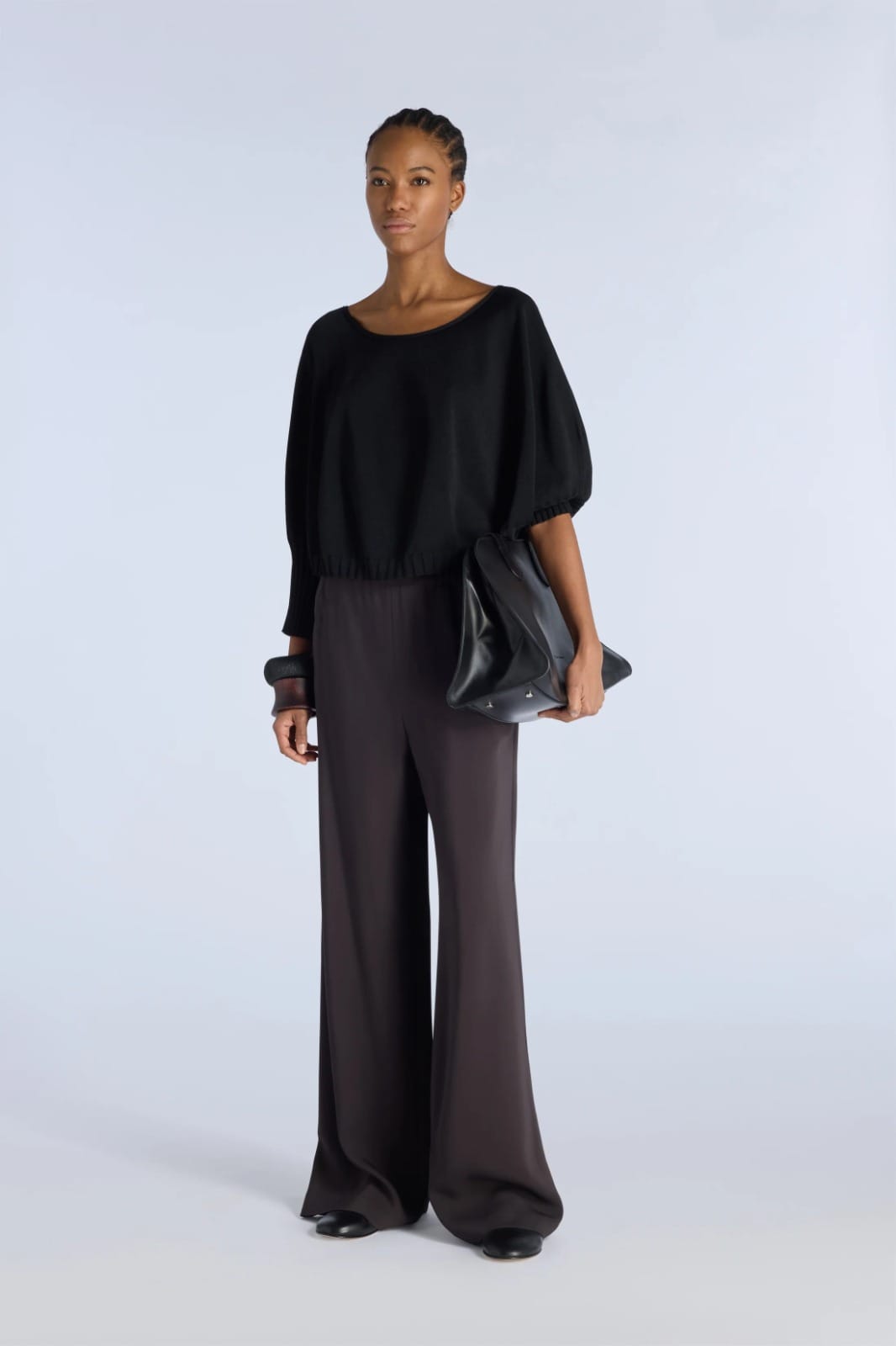 PANTALON PALAZZO EN DRAP DE VISCOSE STRETCH AVEC ÉLASTIQUE À LA TAILLE, LIGNE ÉPURÉE AVEC POCHES LATÉRALES CACHÉES.