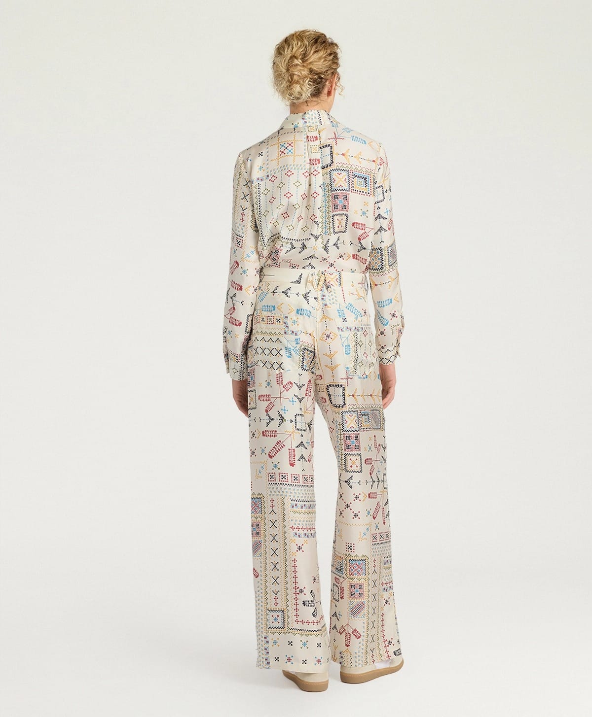 PANTALON ORTIZ EN SERGÉ DE SOIE IMPRIMÉ – MULTICOLORE CRÈME