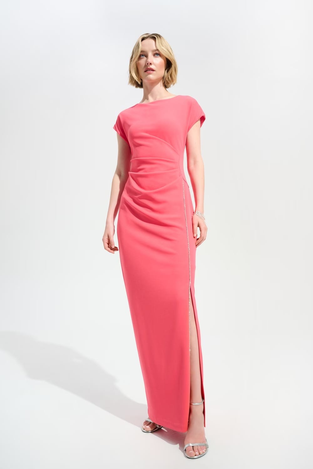 La robe maxi bodycon de Joseph Ribkoff incarne l’élégance féminine avec son encolure ronde et ses manches courtes droites. Parfaite pour les soirées formelles, elle se distingue par ses détails ruche, sa fente séduisante et ses bijoux raffinés. Son design simple et sophistiqué met en valeur votre silhouette, offrant une allure gracieuse et distinguée.