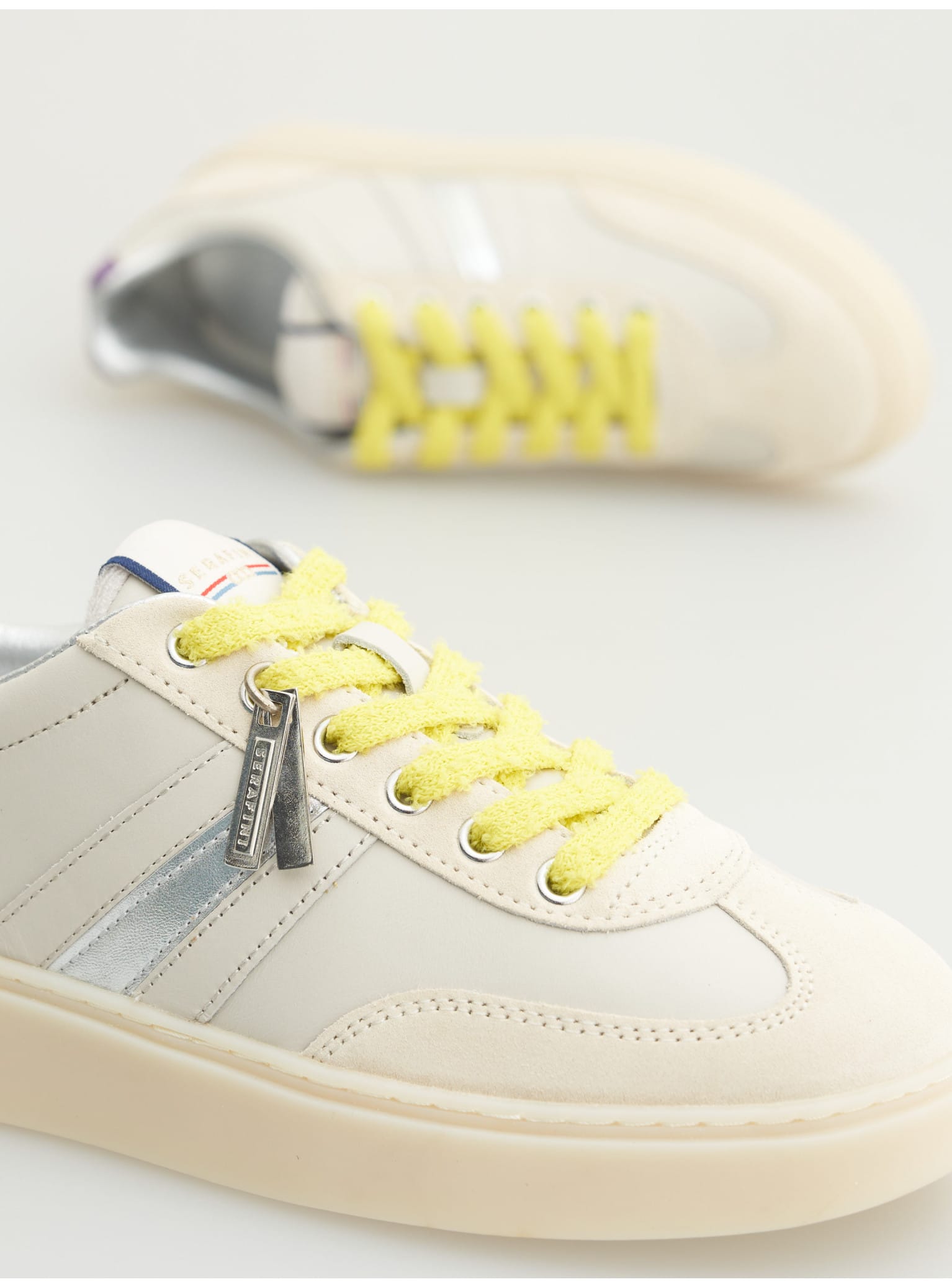 SNEAKERS COURT BEIGE ET ARGENT