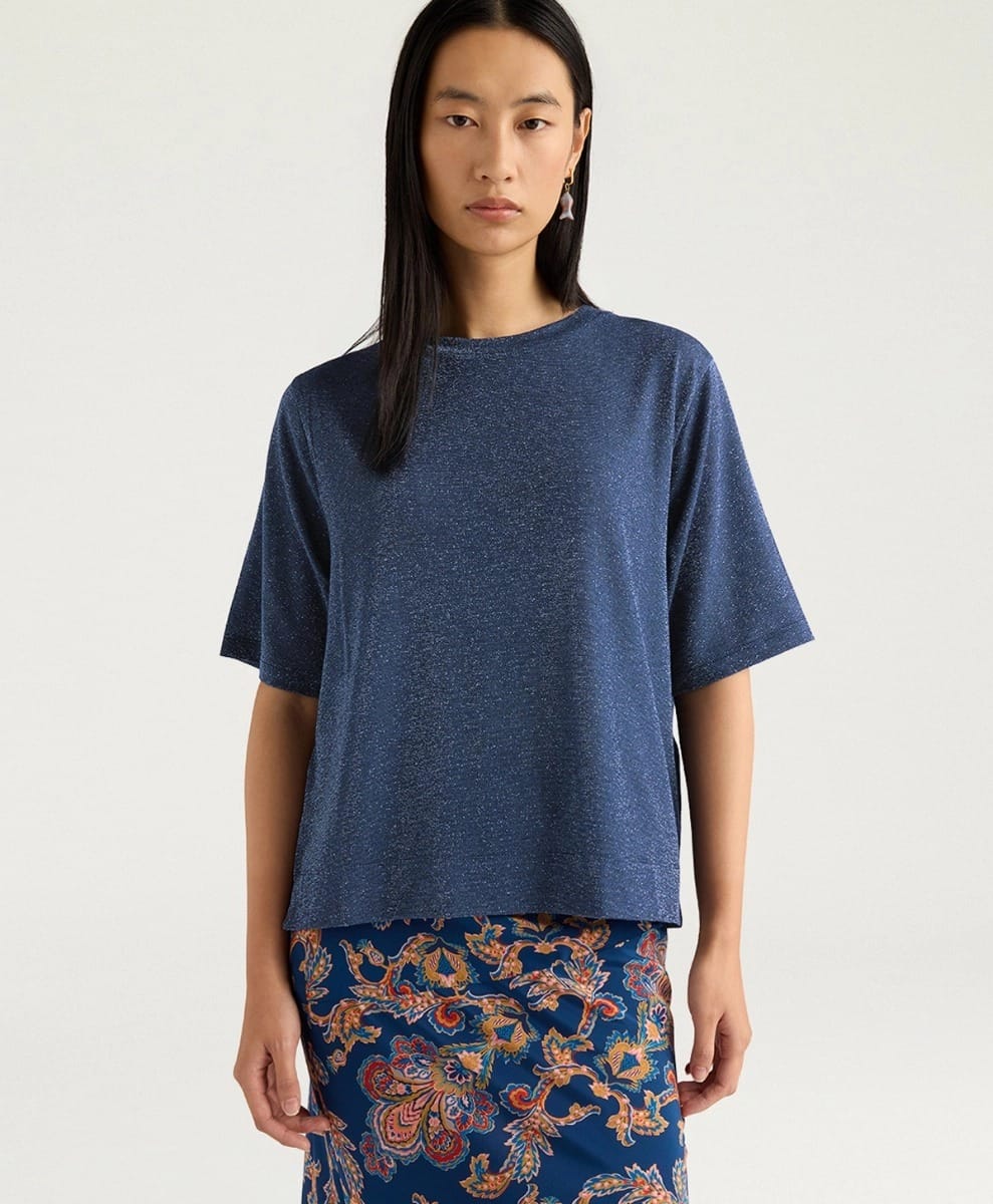T-SHIRT IORA EN JERSEY LUREX UNI – BLEU