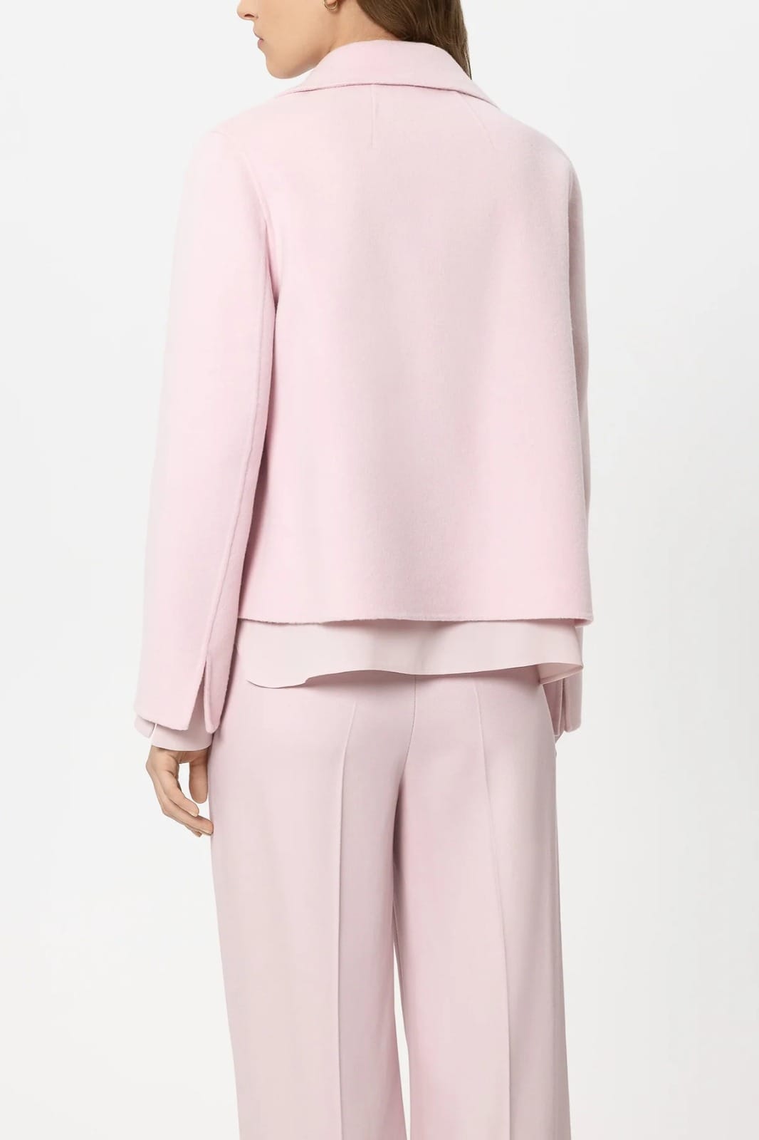Caban raccourci en luxueux mélange de laine et de cachemire dans une finition double face noble faite à la main. Cette veste à double boutonnage possède un col à revers classique et deux poches latérales.